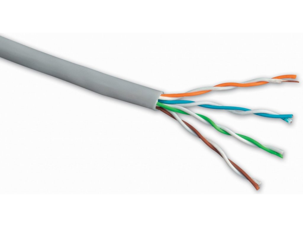 1m UTP kabelu typu "drát", které můžete použít tam, kde nedochází k častému ohýbání kabelu. Např. tedy na instalace do lišt, husích krků pod omítkou atd. Oceníte nižší cenu oproti provedení typu "licna".